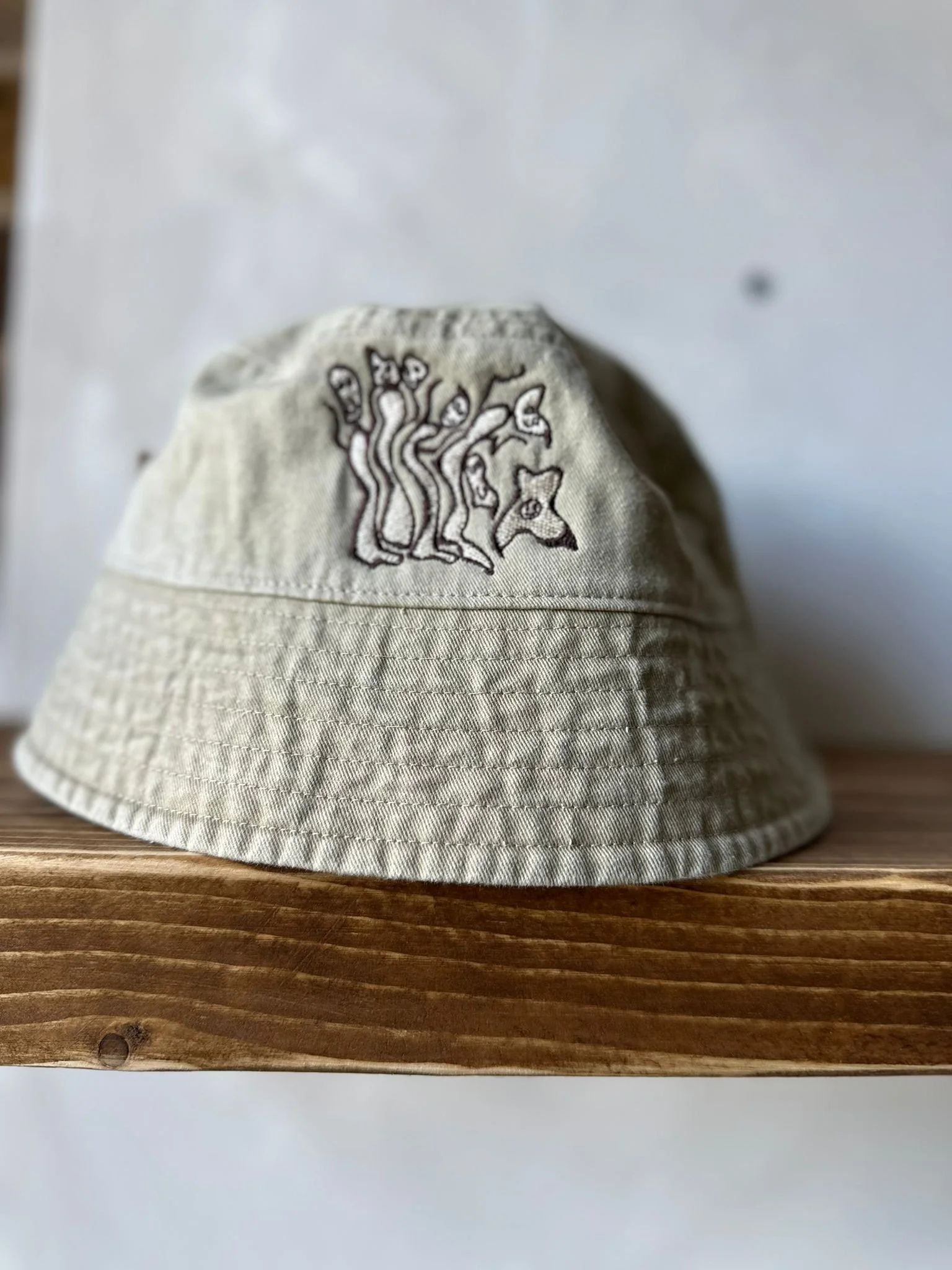 Transcend Beechfield Vintage Stone Bucket Hat. Artwork designed by Sam Hunt. Proceeds go towards supporting Sarcoma research.